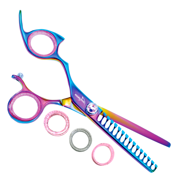 Left Hand Professional Plus Non-Swivel 15 Tooth Rainbow Texture Shear Lifetime Warranty